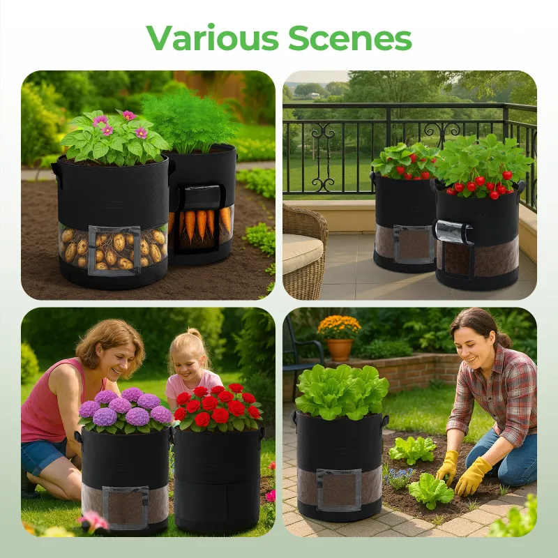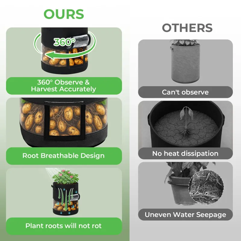 ModernHome 3pcs 15 Gallon Grow Bags Transparent Single Opening Black 3 Light-Blocking Curtains 3 Green Labels Vacuum Packed