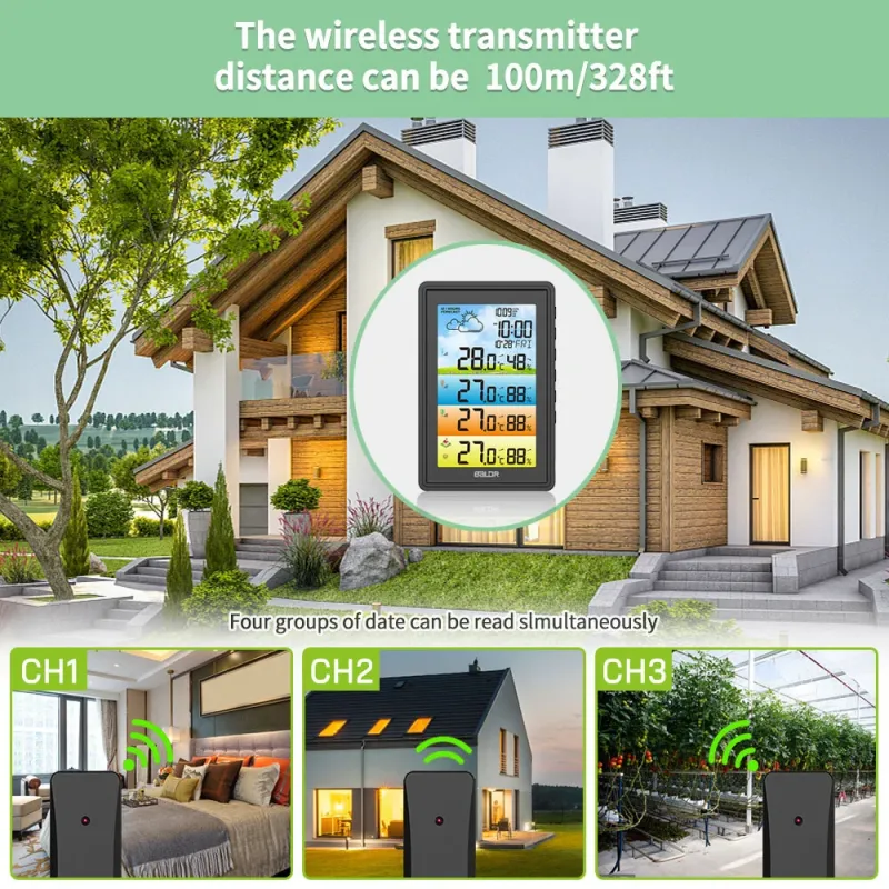 BALDR 3 Sensors Weather Station Wireless Indoor Outdoor Thermometer with Alarm Clock / Calendar / Weather Forecast