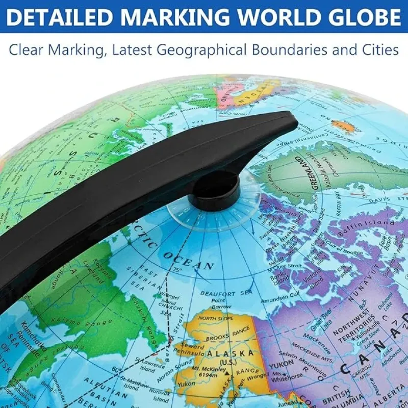 32CM Educational World Globe with Weighted Base Classroom Decorative Large Earth for Students Geography Teachers 360 Rotating Interactive Globe with World Map-Learning Tool Educational Toys