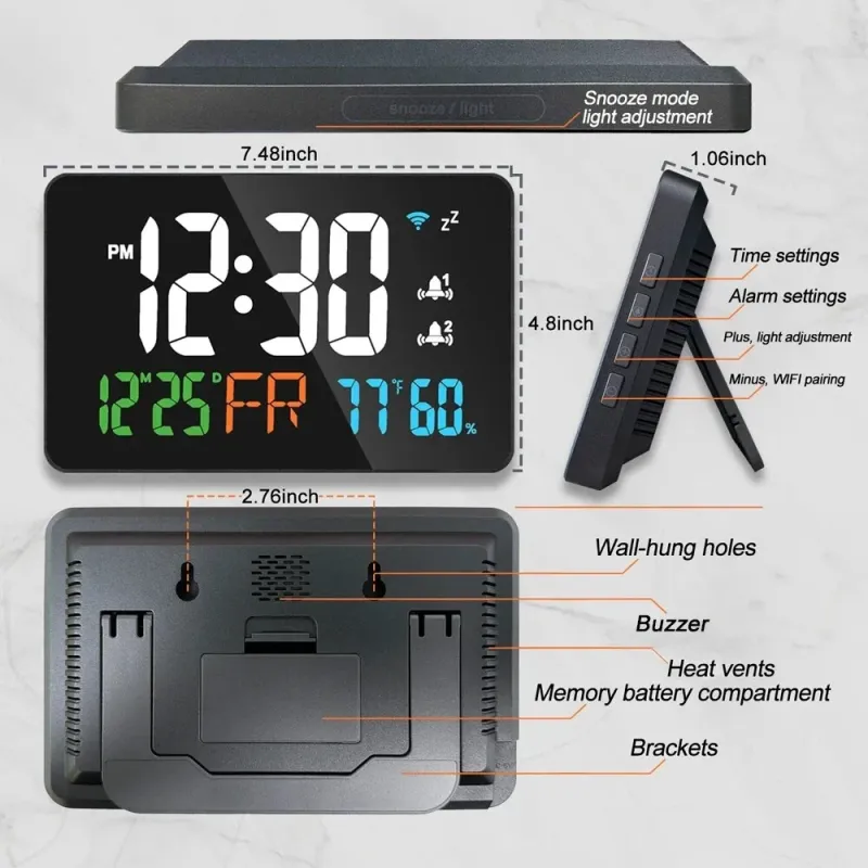 LED Graffiti Clock Automatic Time Calibration Wifi Temperature And Humidity Atomic Clock Mirror Clock Four Levels of Brightness Adjustment