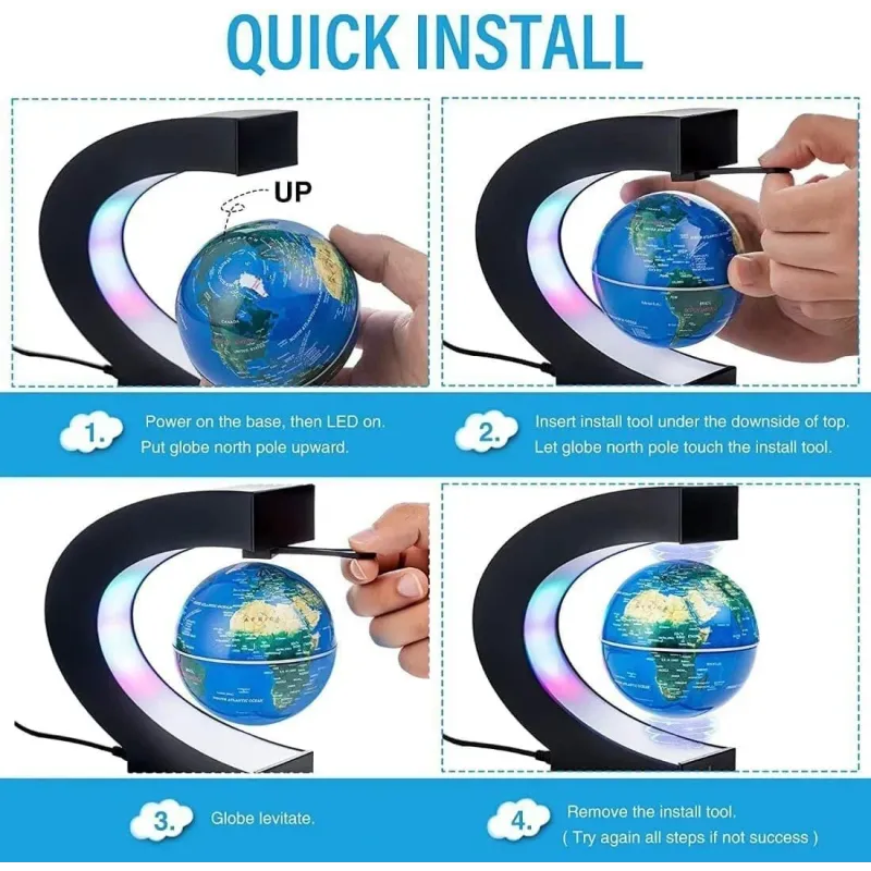 Magnetic Levitating Globe World Map with LED light Home Office Decoration Educational Gifts for Kids US Plug