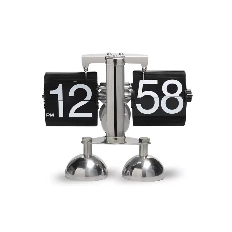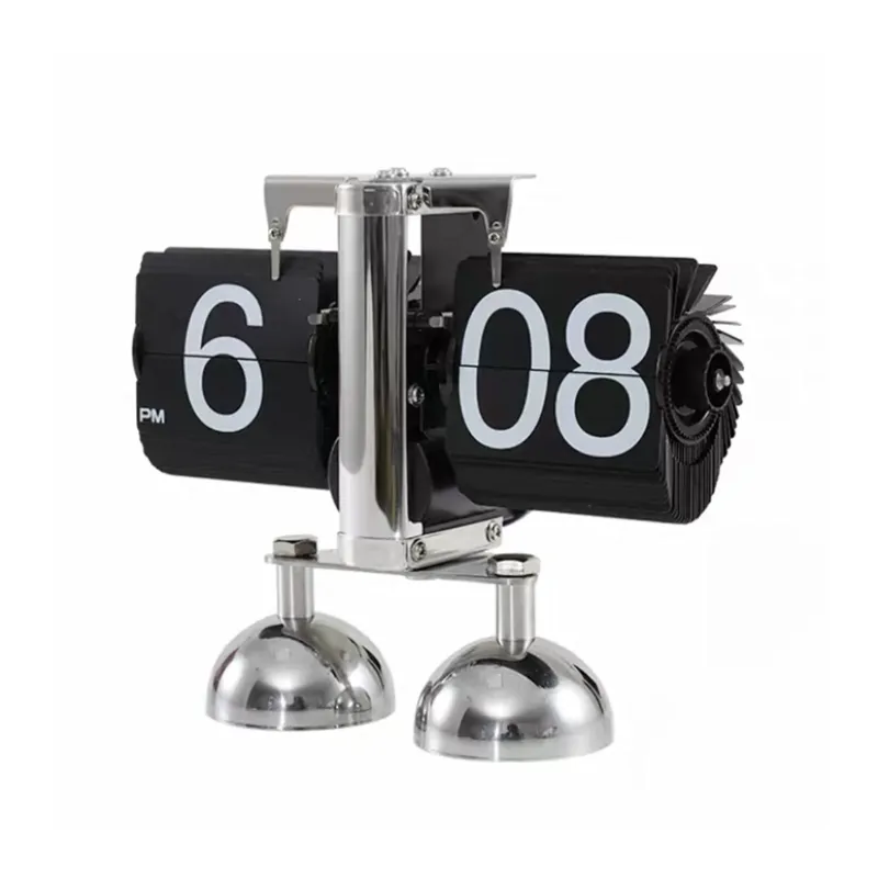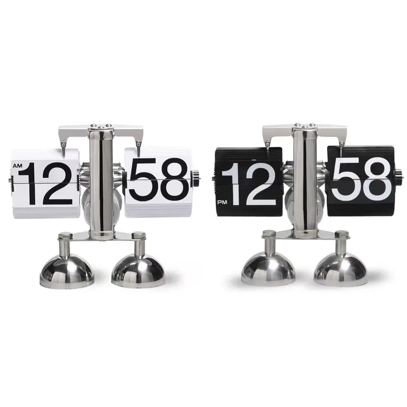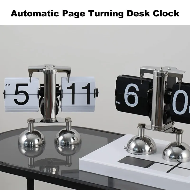 Vintage European Style Mechanical Flip Clock with Dual Feet Page Turning Clock Stainless Steel Double Foot Small Scales Flip Desk Clock Vintage Living Room Home Decoration