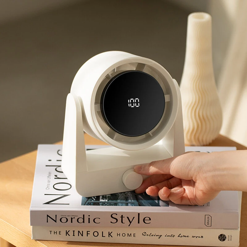100 Speed Digital Display Electric Fan High Power Wind Desktop Up and Down Adjustable Fan Punch-Free Wall-Mounted USB Household Small Air Circulation Fan Adjustable Angle