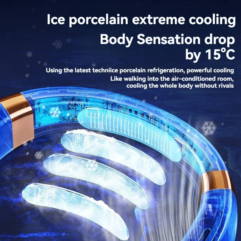 1800mAh Portable Hanging Neck Fan Top Version Battery Display Colorful Breathing Light Portable Halterneck Fan USB Handheld Silent Multi-function Bladeless Mini Electric Fan
