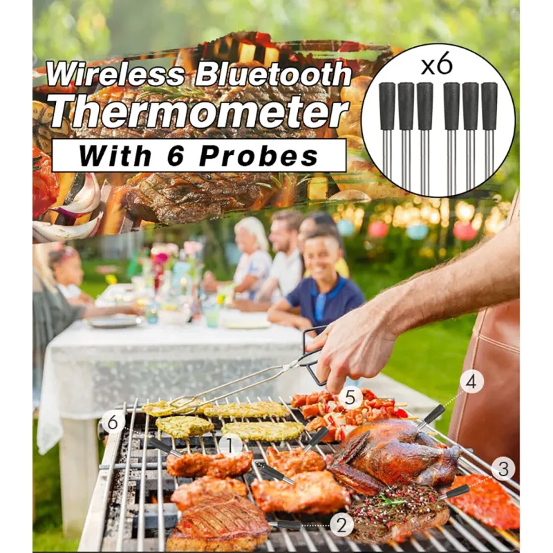 BBQ Probe Wireless Bluetooth BBQ Thermometer Kitchen Food Barbecue Thermometer Smart Cooking Thermometer 165ft Remote Meat Food Thermometer Instant Read
