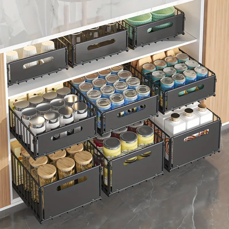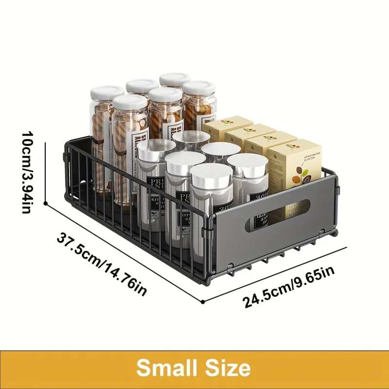 2PCS Kitchen Sink Rack Retractable Metal Basket Double Layer Seasoning Snack Bottle Pull Out Storage Rack Cabinet Layered Rack
