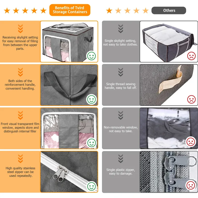 TVIRD 4 Packs 90L Large Storage Bags Clothes Organizer Storage Two-way zipper Two handles Front PVC transparent material Single capacity