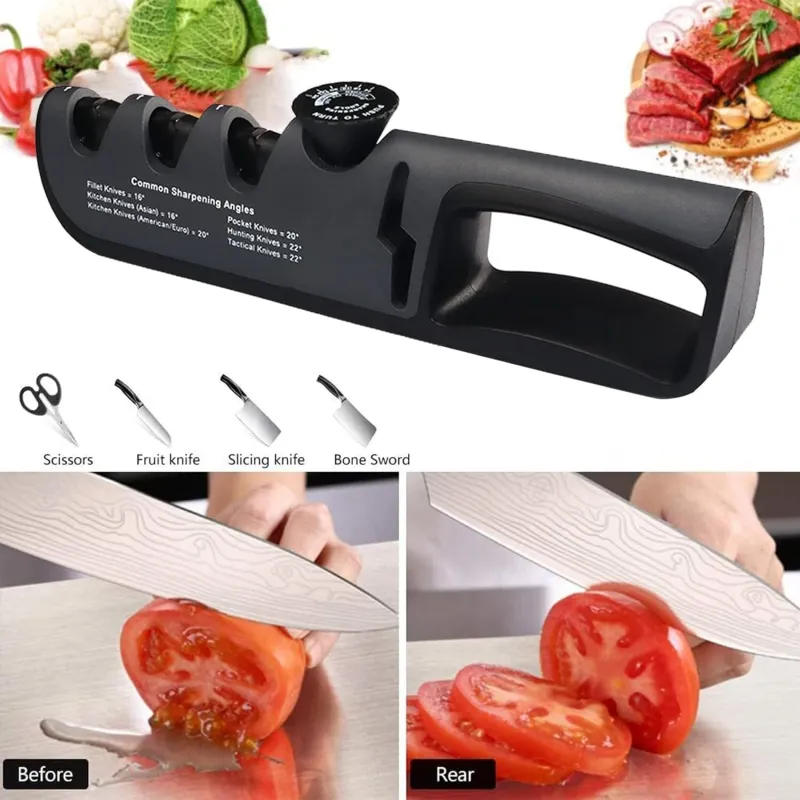 Multifunctional 4-Stage Knife Sharpeners with Adjustable Angle Knob - Premium Quality Handheld Knife Sharpener Small Portable Knife Sharpener for Scissors