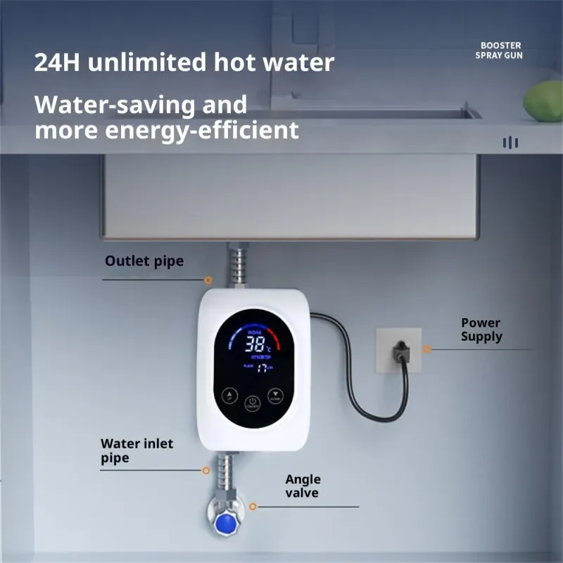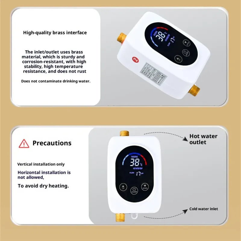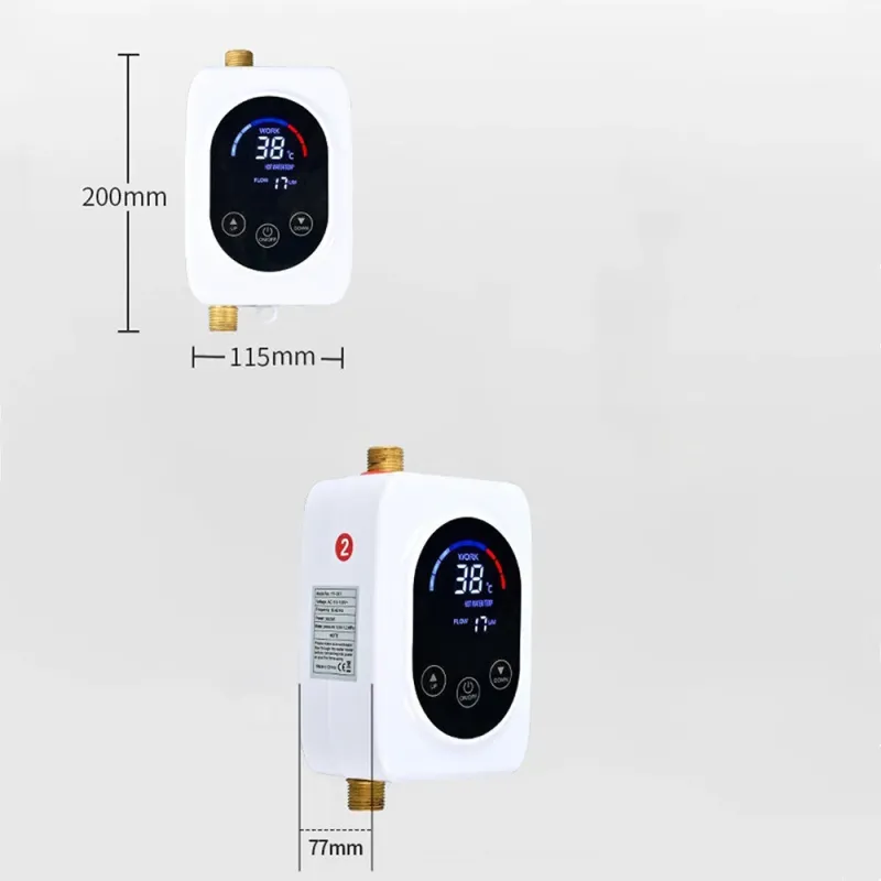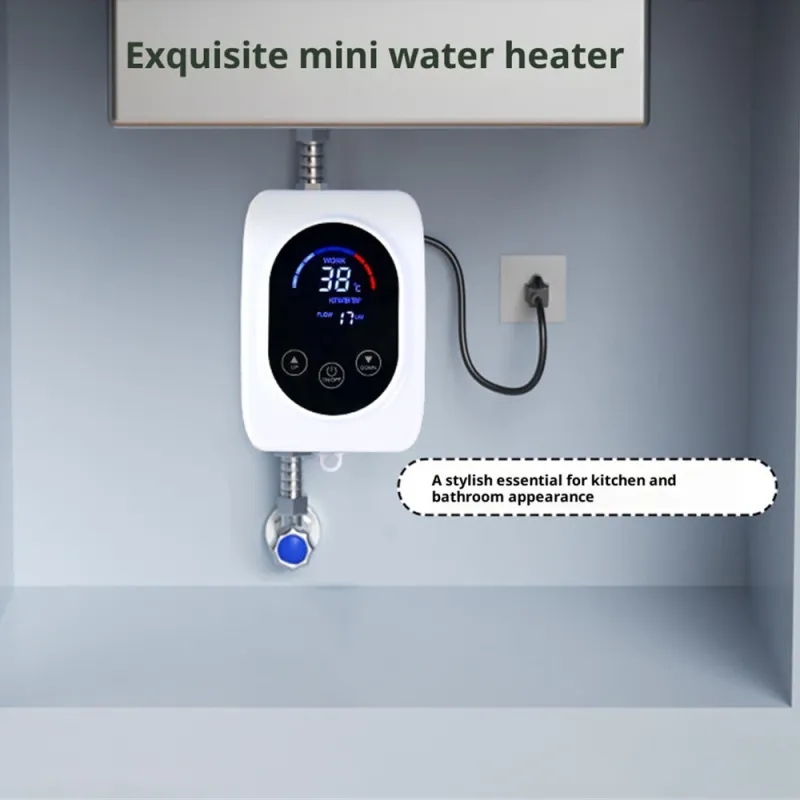 3800W 220V Mini Instant Water Heater with Touch Screen Smart Wall Mounted Electric Shower for Bathroom Kitchen EU Plug