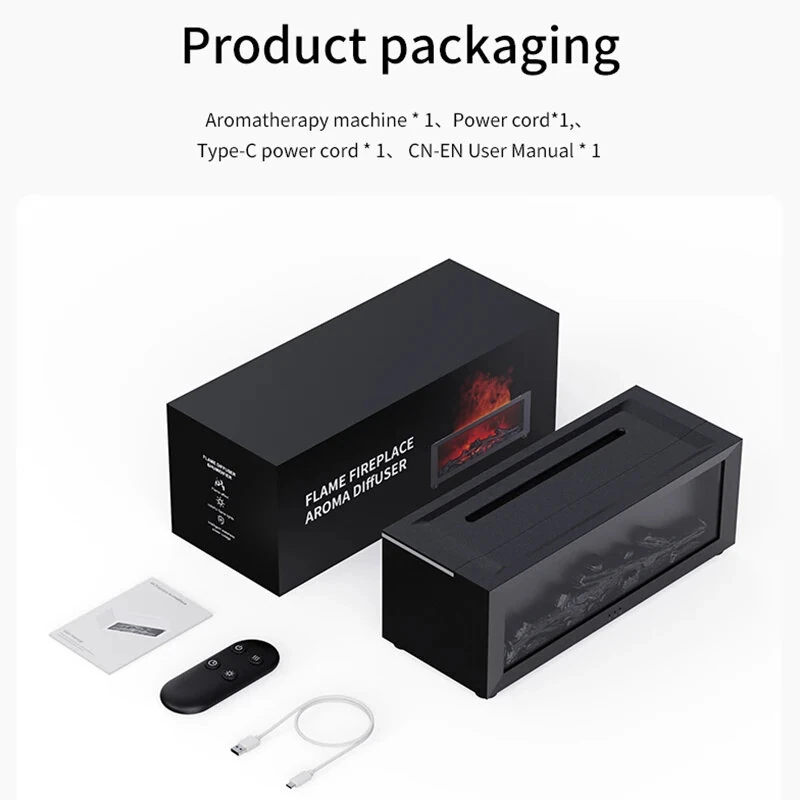 Kinscoter Fireplace Air Humidifier Waterless 150ml Water Tank Auto-Off Aroma Essential Oil Diffuser with LED Light & Remote Control for Home Gift
