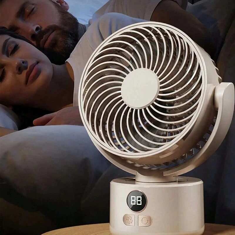 Tevorex Compact USB Rechargeable Desk Fan Quiet Large Battery Display Rotating Cooling Airflow for Home Office Outdoor