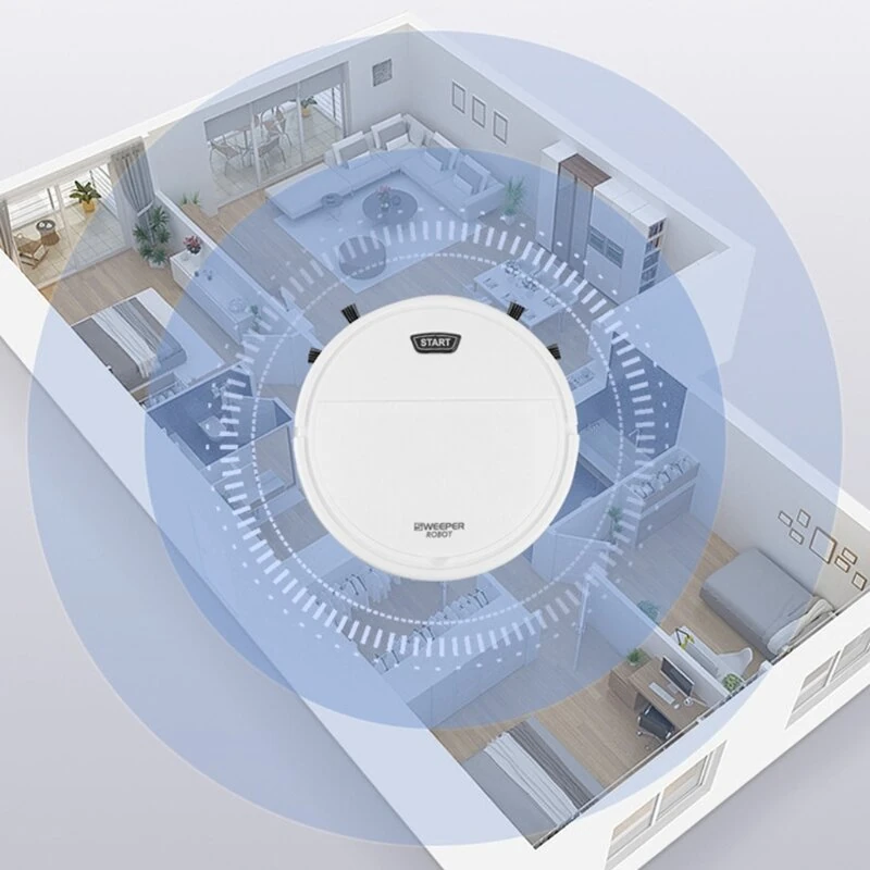 3-in-1 Sweeping Vacuum Mopping Rechargeable Smart Cleaning Robot 1200Pa Power Suction Large Capacity Dust Collection Box for Various Floors Black/White