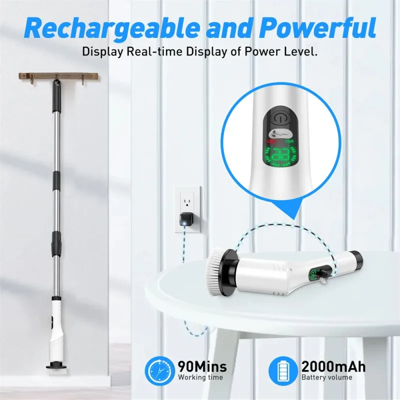 Tevorex 9-in-1 Multi-Function Electric Cleaning Brush Cordless Rotary Cleaning Brush Handheld Retractable Digital Cleaner for Bathroom, Tub, Tile, Floor, Car