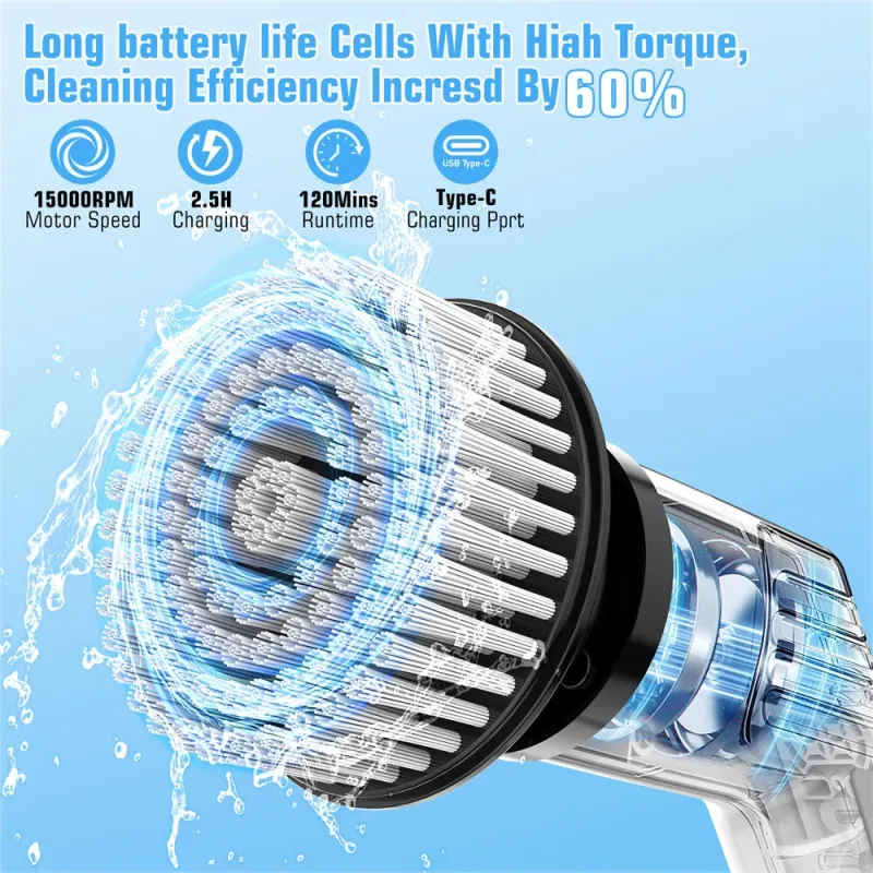 Tevorex 9 in 1 Multifunctional Handheld Electric Cleaning Brush With Telescopic Function, Bathroom Floor And Kitchen Cleaning Tool