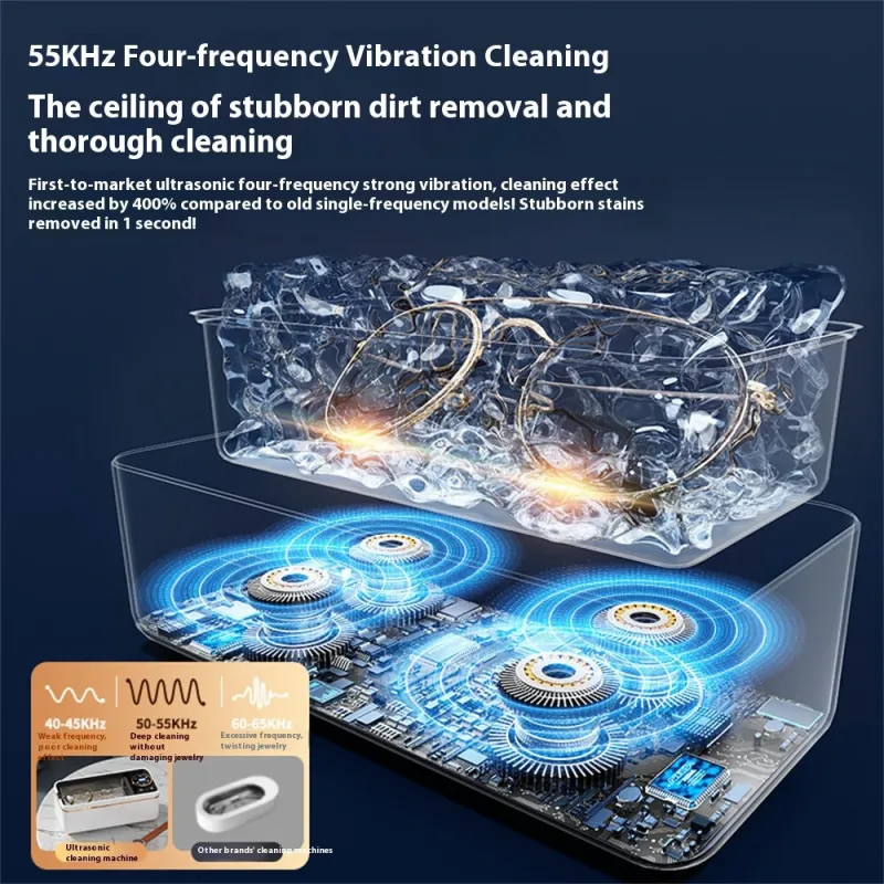 Tevorex Ultrasonic Jewelry & Glasses Cleaner 450ml Capacity High-Frequency Vibration Multifunctional Deep Cleaning Machine