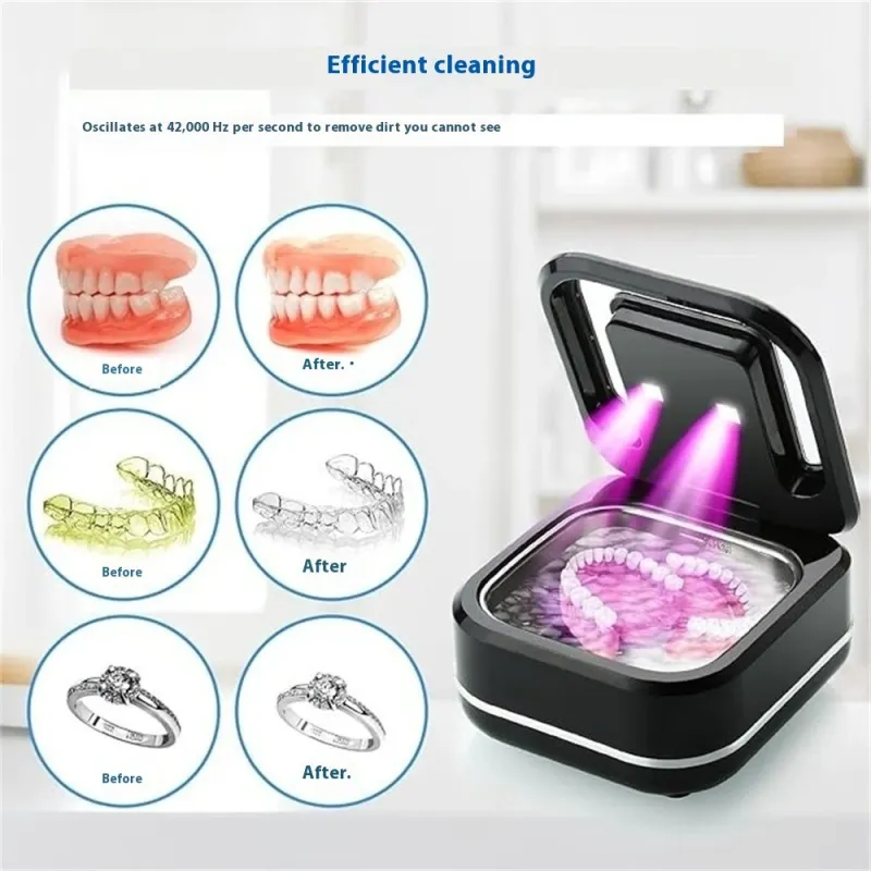 Tevorex Ultrasonic Retainer Cleaner Dental Cleaning Machine with UV Light 304 Stainless Steel Cleaner for Dentures Aligners Braces Mouth Guards Jewelry