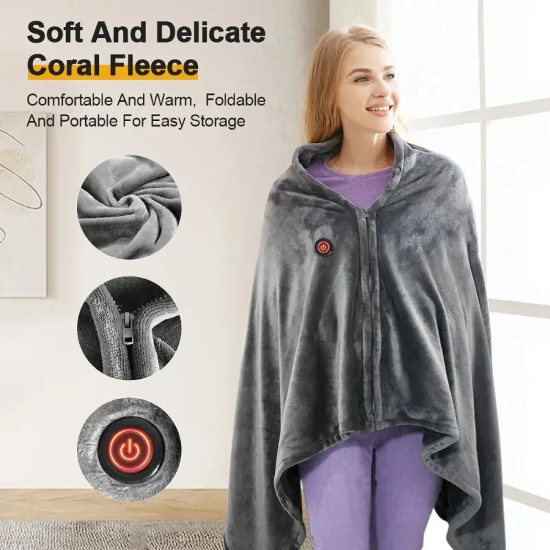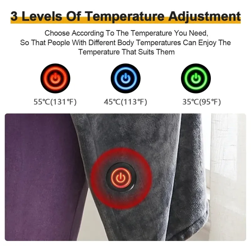 150x80cm USB Electric Blanket Warm Cape Coral Fleece Plush 3 Speed Winter Heater Warming Pad