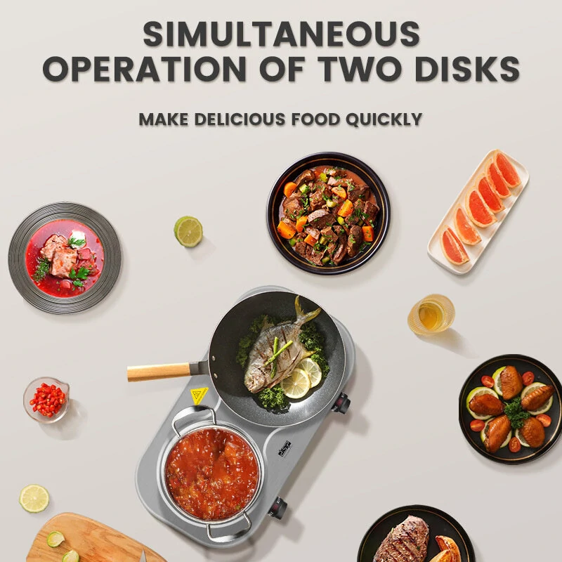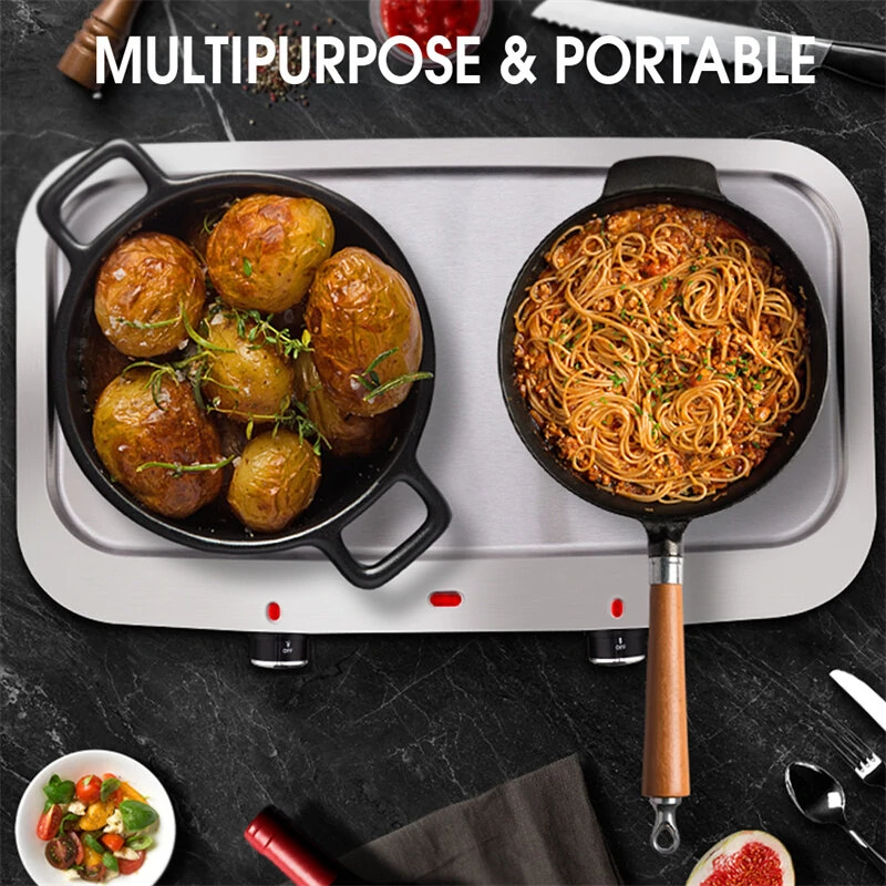 1500W Electric Stoves Stainless Steel Panel Cooktop Double Heating Plate Hot Thermostat Control Cooking Appliances Kitchen Home