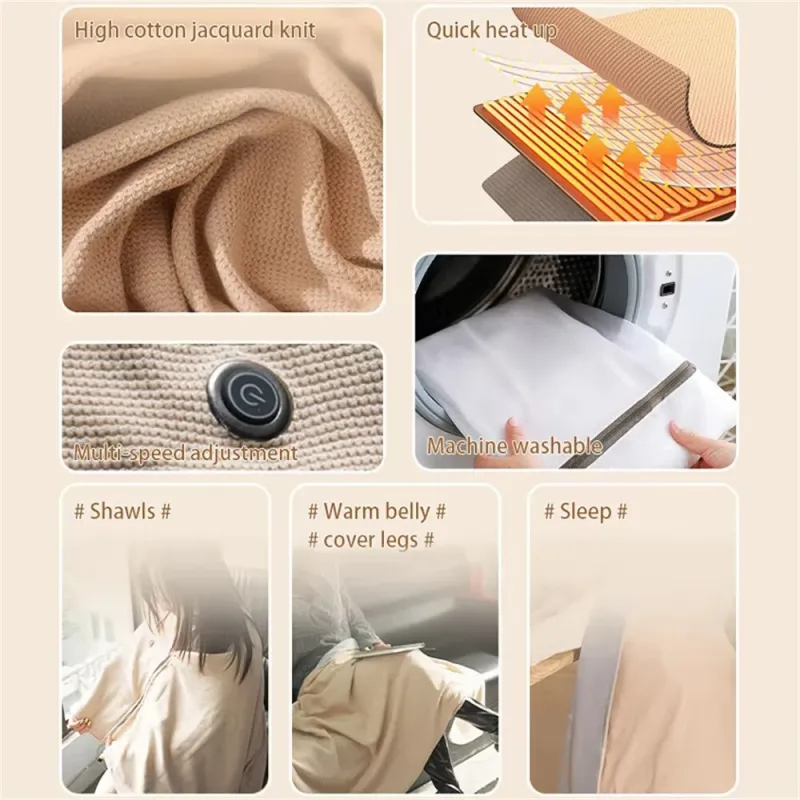 Tevorex Blanket Heating Blanket 15 second Rapid 3 Heating Levels Supports USB And Power Bank Charging, For Office Home And Outdoor Warmth