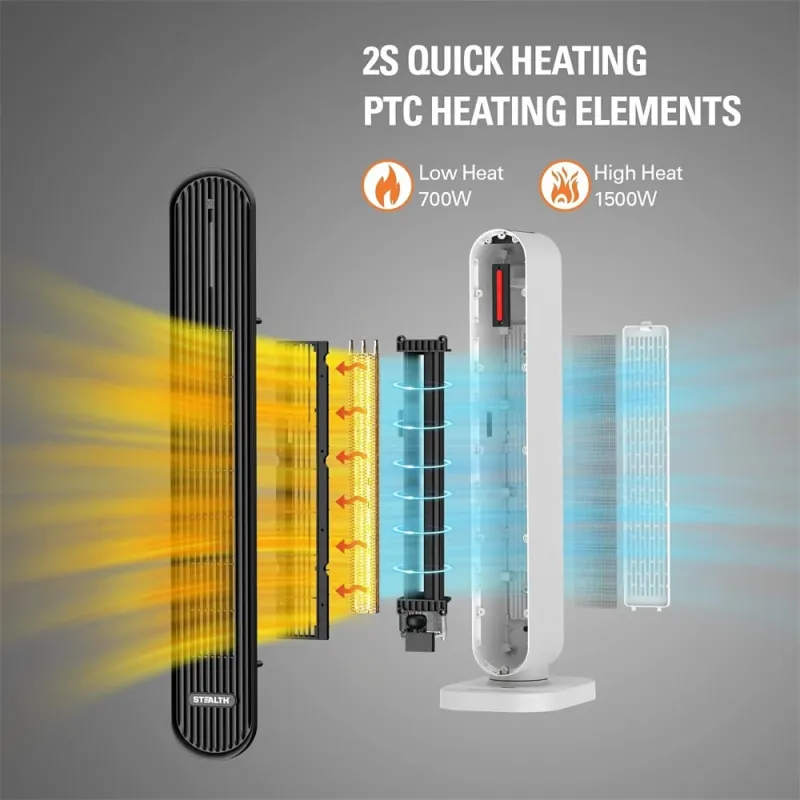 US Direct STEALTH 32'' Space Heater, 4 Modes, 6h Timer, Safety Fast - Quiet Heat,Tip-Over Protection, 1500W PTC Ceramic Heater Portable Tower Fan Electric Heater for Bedroom, Office, Indoors JHT100
