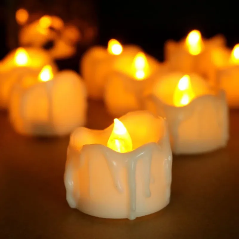 12pcs LED Electronic Tealight Remote Control Timing Tears Christmas Wedding Birthday Confession Decoration Flash Candle with 2-Key Remote Control