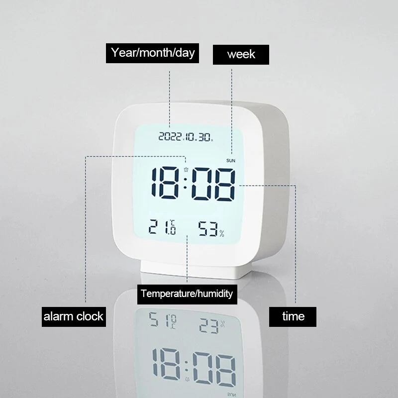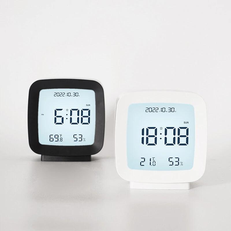 Digital Alarm Clock 12/24H Electronic Alarm Clock Voice-activated Backlight Temperature Humidity Nightlight Table Clocks with Snooze Function