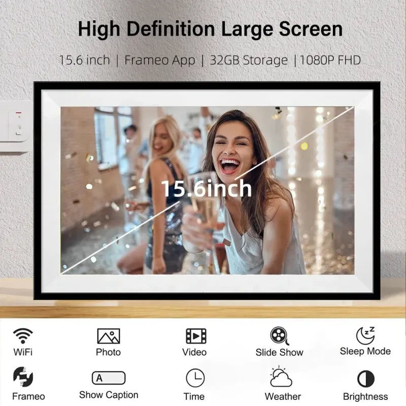 Frameo 15.6 Inch HD Touch Screen Digital Touch Screen Photo Frame 1920x1080P IPS High Definition Dispaly Electronic Photo Frame with 32GB Memory Auto-Rotate Portrait and Landscape