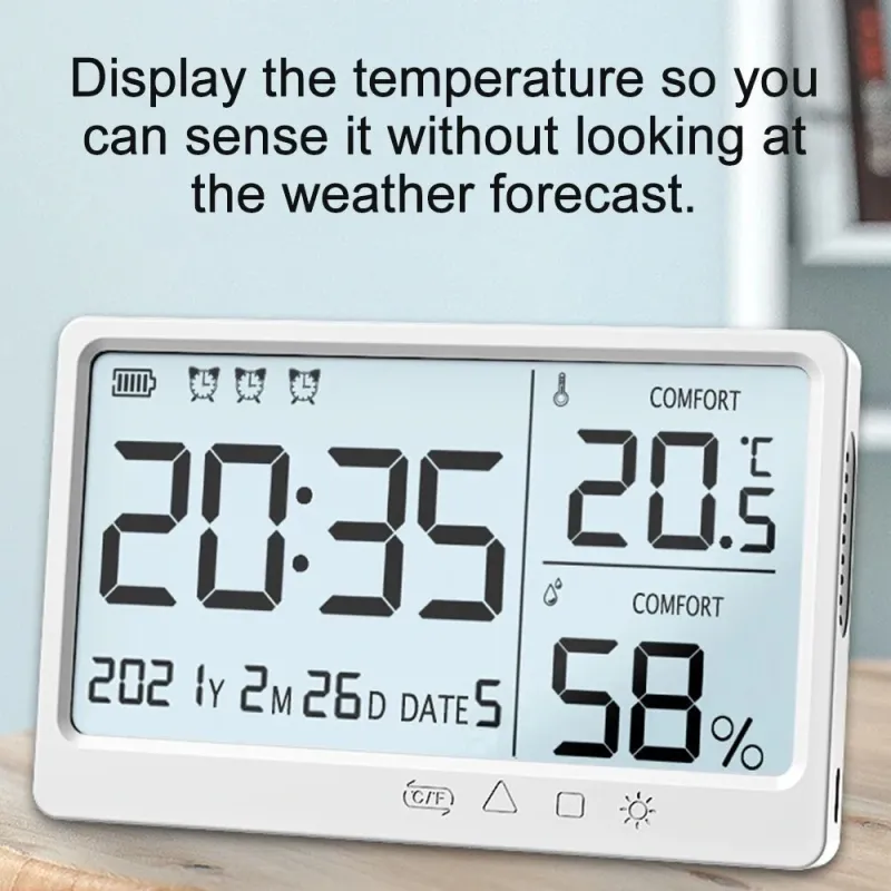 LCD Digital Temperature Humidity Meter -10~50 Measurement Electronic Thermometer Hygrometer LCD Display Alarm Clock