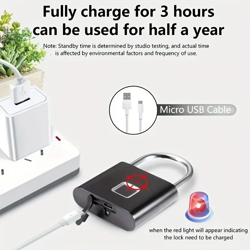 Smart Fingerprint Padlock 20 Fingerprints USB Rechargeable Door Lock Biometric Fingerprint Door Lock Zinc Alloy Smart Life Unlock