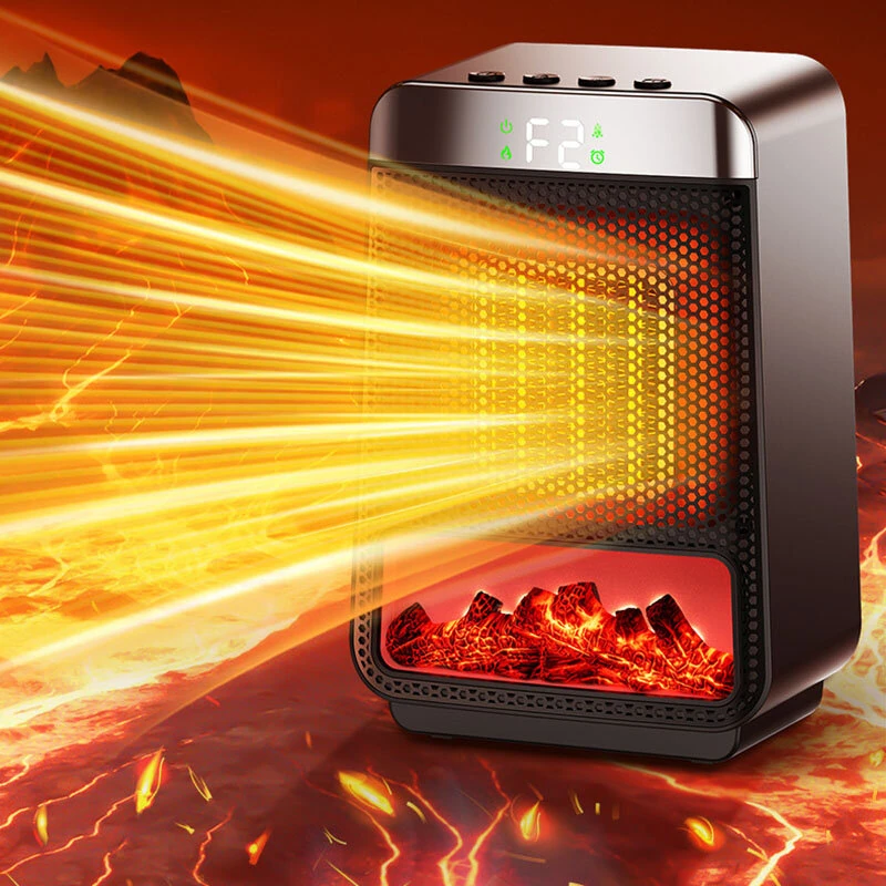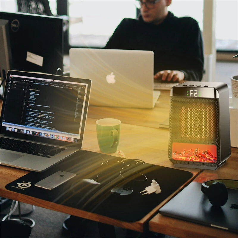 Portable Desktop Electric Flame Heater 1500W Mini Fast Heating PTC Ceramic Space Fireplace Winter Household Small Electric Heater
