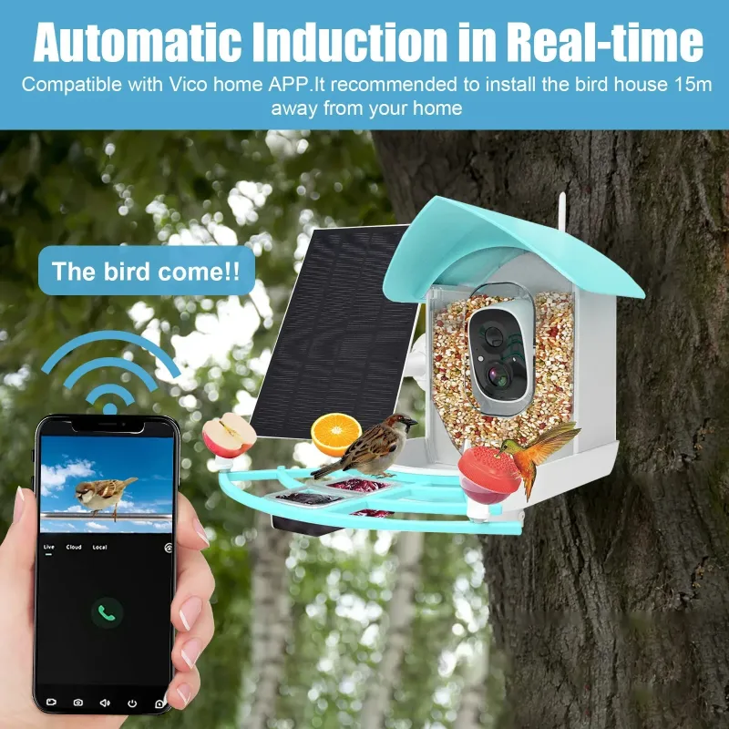 ZANLURSmart Solar Rechargeable Bird Feeder Camera 1080P HLive Stream Video Files Sharing Real-time Motion Detection Auto-capture ABirds Recognition IP65 Waterproof Wildlife Photography