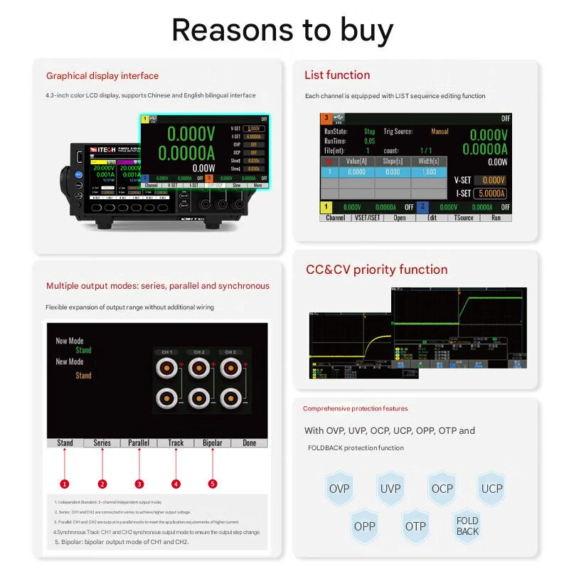 IT-N6300 Series Triple-Channel Programmable DC Power Supply 4.3-inch Color LCD Independent Control USB LAN RS232