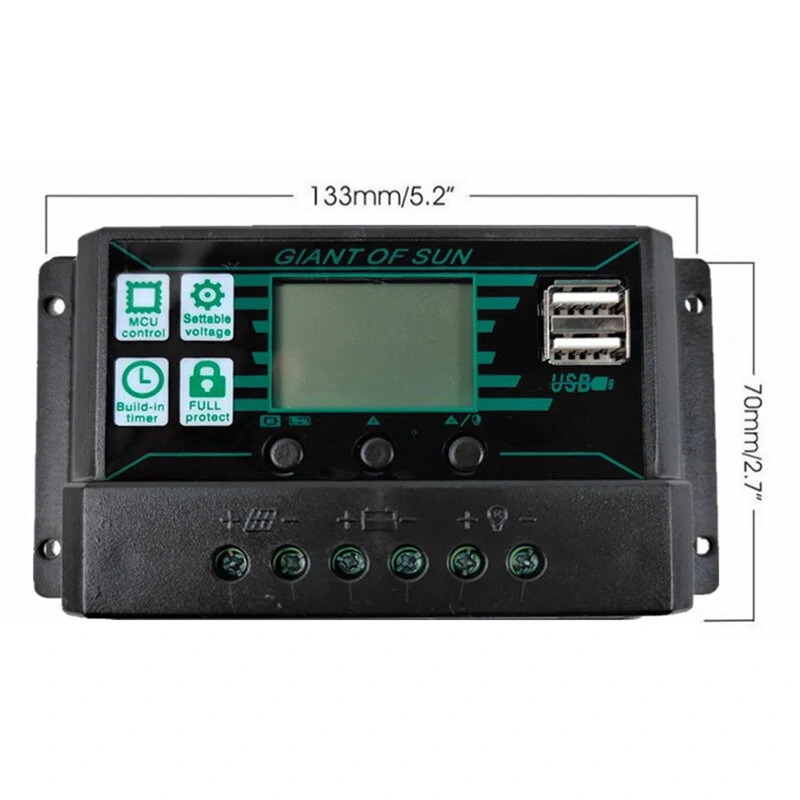 12V/24V 10A-100A LCD Solar Controller Dual USB DC Port Current Solar Charge Cotroller