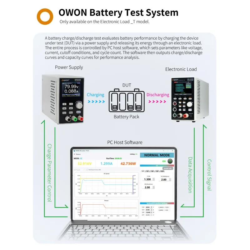 OWON OEL60 Series Programmable Electronic Load 2.8 Inch TFT Display 600V Voltage 30A Current 300W Power OCP OPP Multiple Protections Support SPCI USB RS232 Interface,Ripple Test Waveform Analysis(optional)