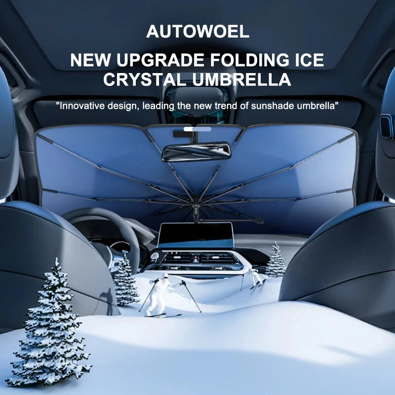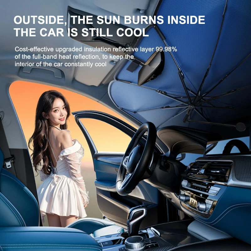 Car Front Windshield Sunshade V-Neck Foldable Umbrella Reflective Sunshade For Vehicles Blocking UV Sunshade Summer Keep Cool