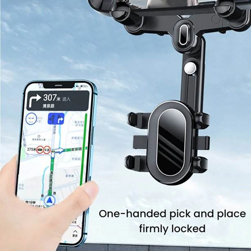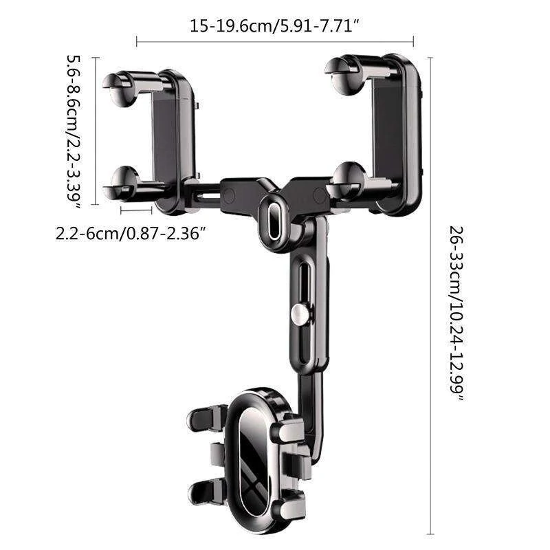Car Rearview Mirror Bracket Extendable 360 Rotating Multifunctional Phone Mount for Navigation Reverse Mirror Holder