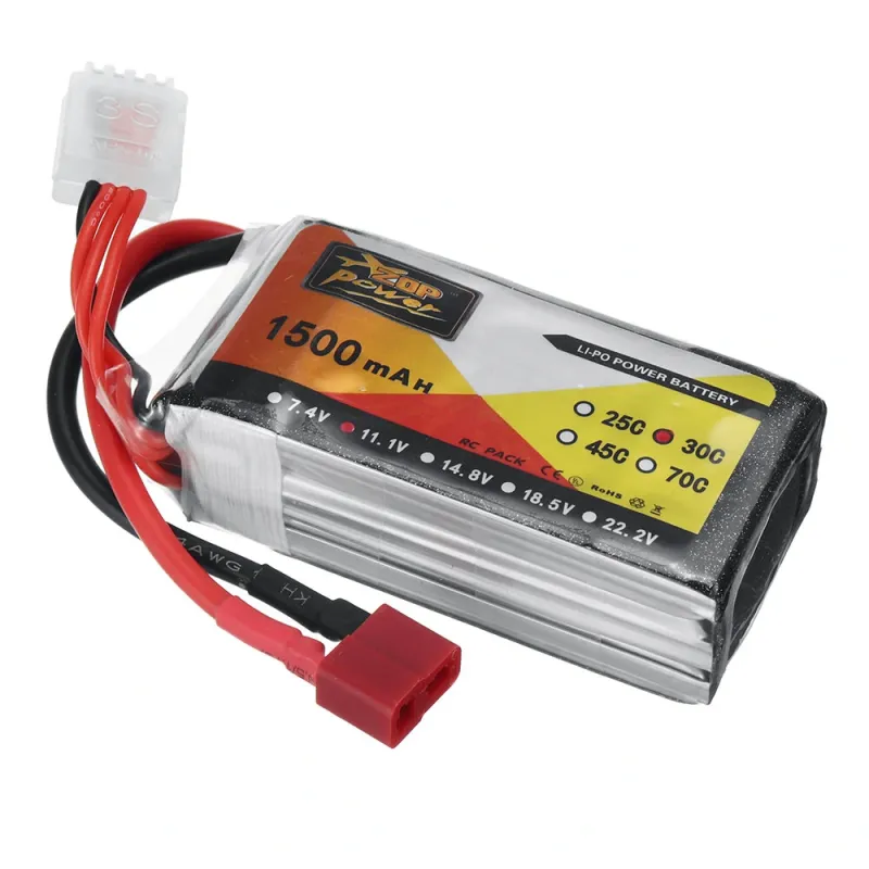 ZOP Power 11.1V 1500mAh 30C 3S LiPo Battery T Plug for RC Car