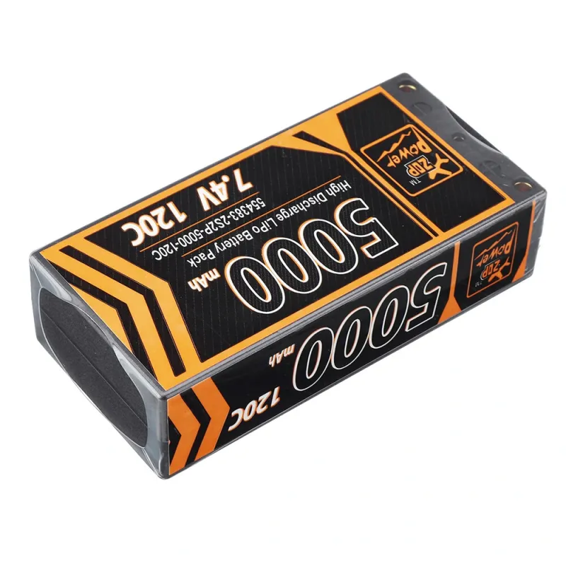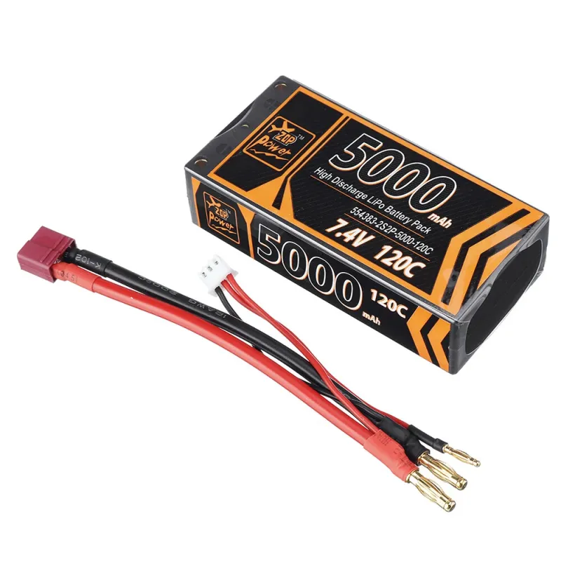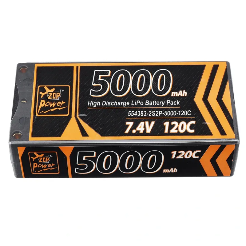 ZOP Power 7.4V 5000mAh 120C 2S Lipo Battery T Deans Plug Hard Case for RC Car