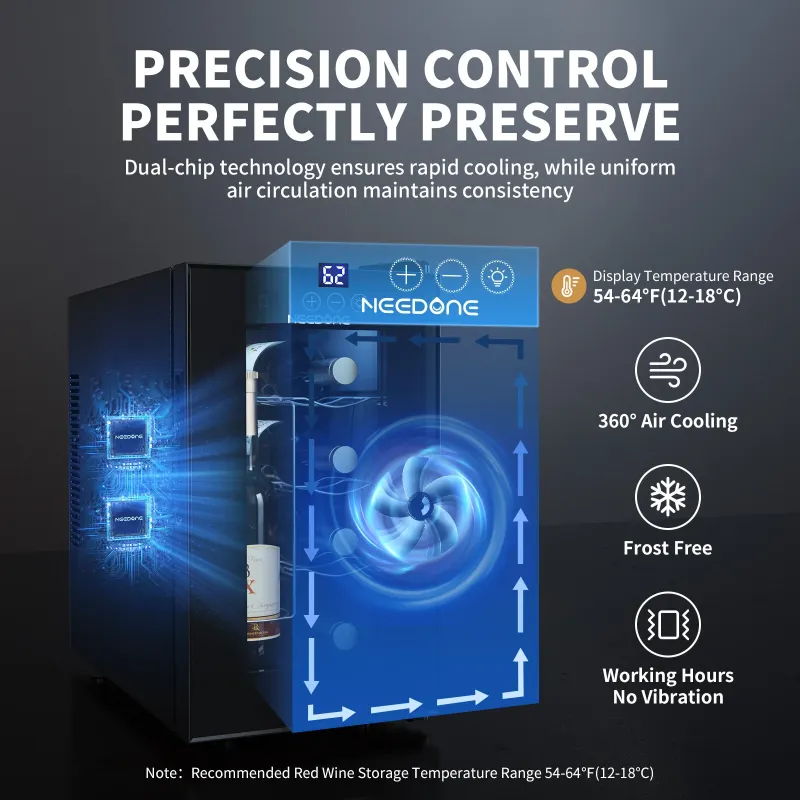 NEEDONE 23L 8-Bottle Wine Fridge Freestanding Thermoelectric Wine Cooler Black