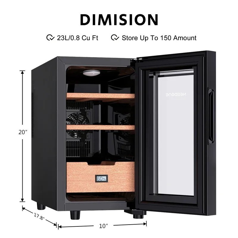 NEEDONE 23L Cooler Humidor Electronic Cooler Humidor with Heating (150 Capacity) with Spanish Cedar Wood Shelves & Drawer with Hygrometer, Upgraded Version Cooler Humidor