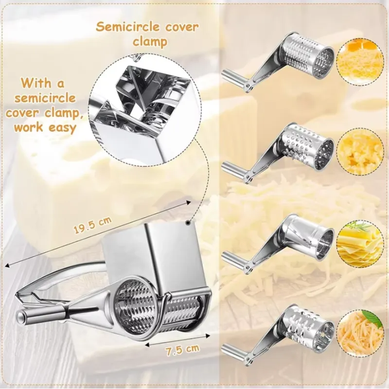 4 PCS Handheld Stainless Steel Rotary Cheese Grater Kitchen Tool Garlic Carrot Cutter Slicer Shredder Grinder