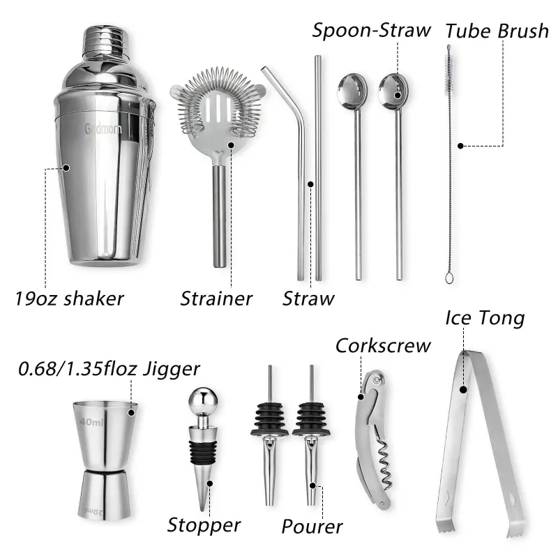 Godmorn Cocktail Shaker Set Bartender Kit 304 Stainless Steel Martini Shaker and Strainer