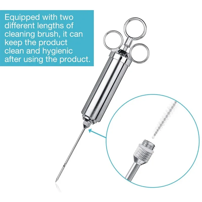 304 Meat Injector Stainless Steel BBQ Meat Injector Marinade Syringe 60ml with 3 Needles Kitchen Beef Gadget