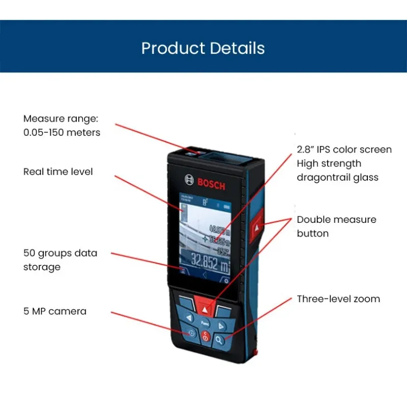 GLM150 C Laser Rangefinder 150 Meter Range Bluetooth Enabled Measuring Master APP IP54 2.8" IPS Screen with Zoom Function