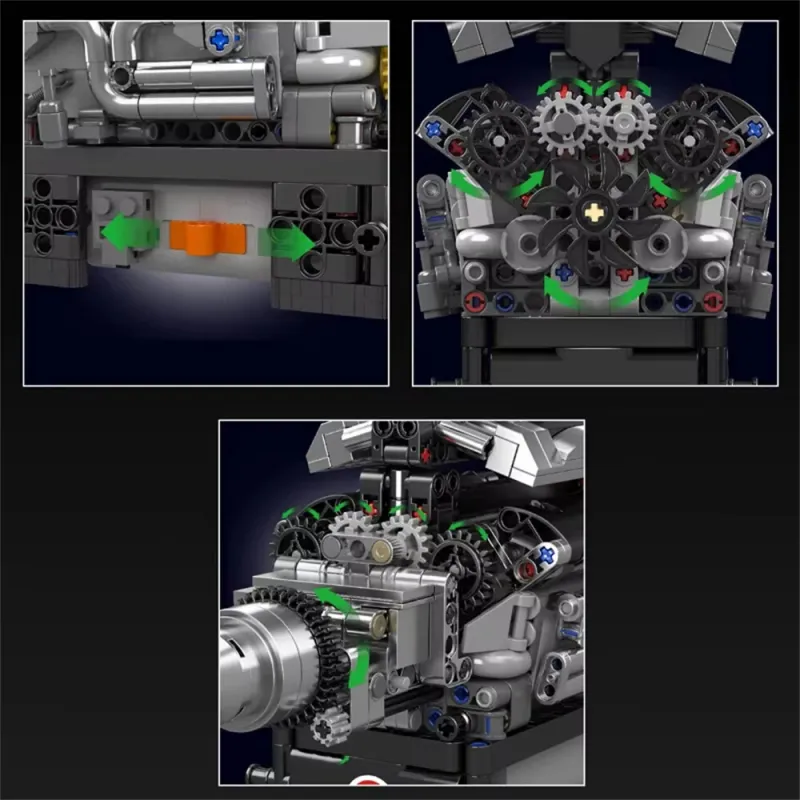 Mould King 10205 10207 The RR Luxury Car V12 Engine Model / The Motorized PAG Supercar V12 Engine Model Building Block Assembly Kit Brick Set Technical Car Toys Kids Christmas Gift