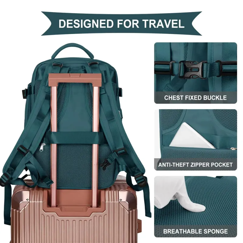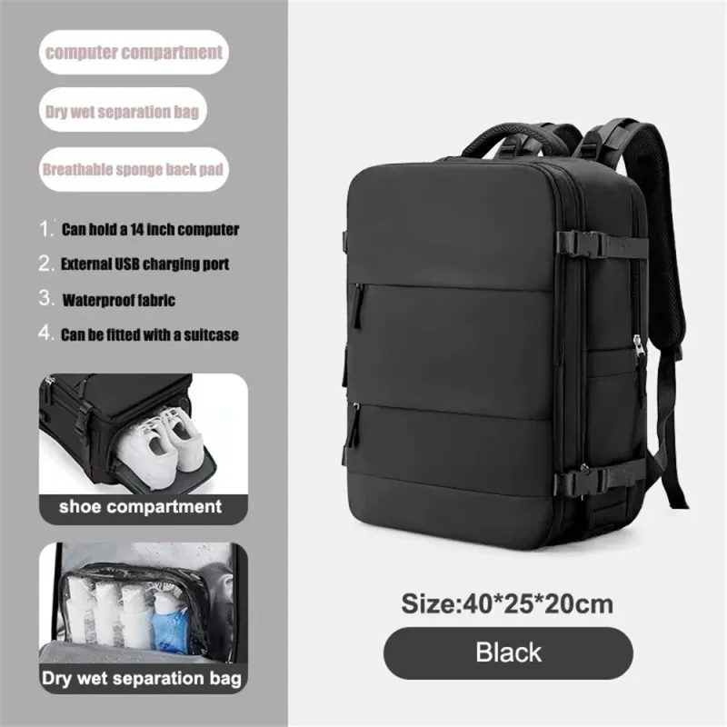 40*25*20cm Waterproof Nylon Travel Backpack 180 Open Design Laptop Clothing Shoes Compartment Luggage Bag with Trolley Strap