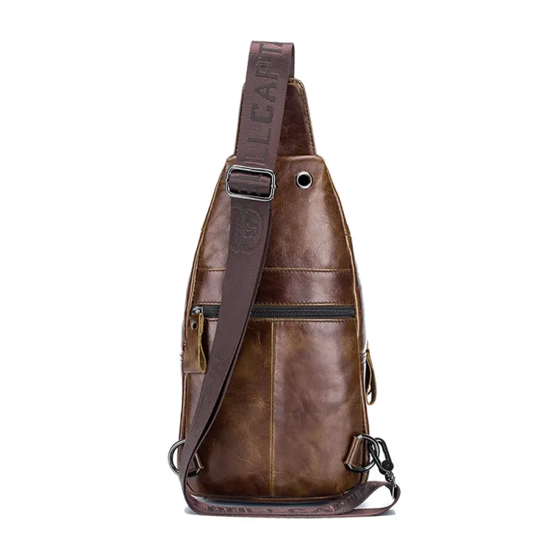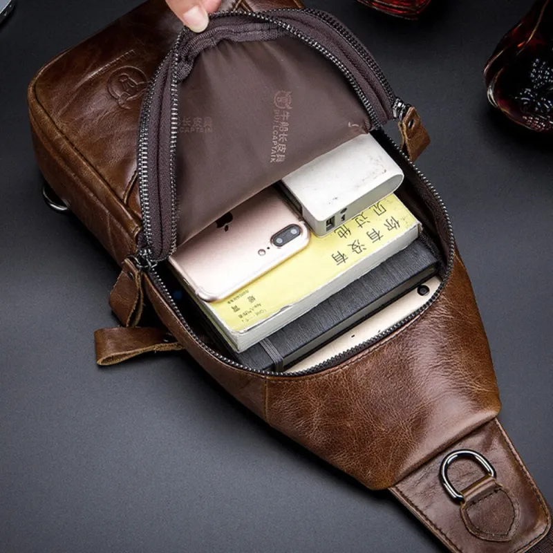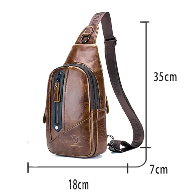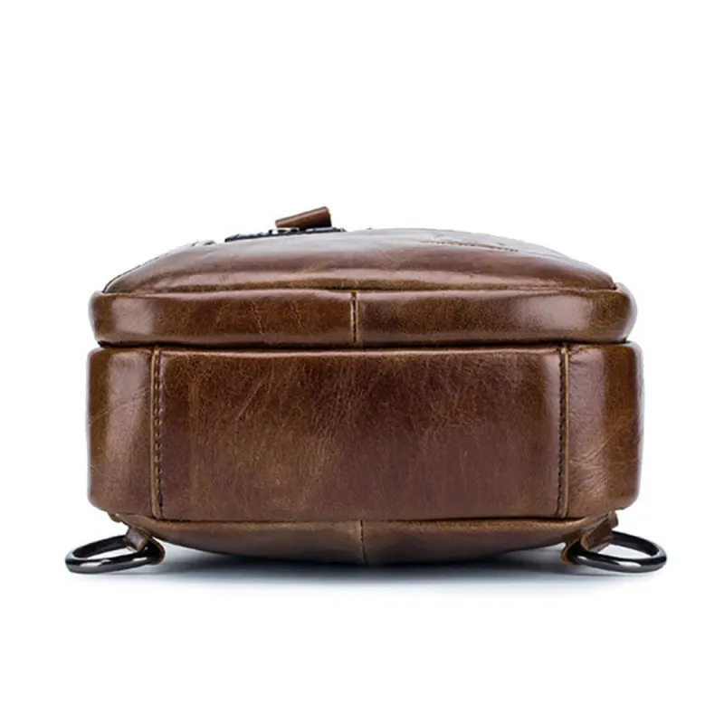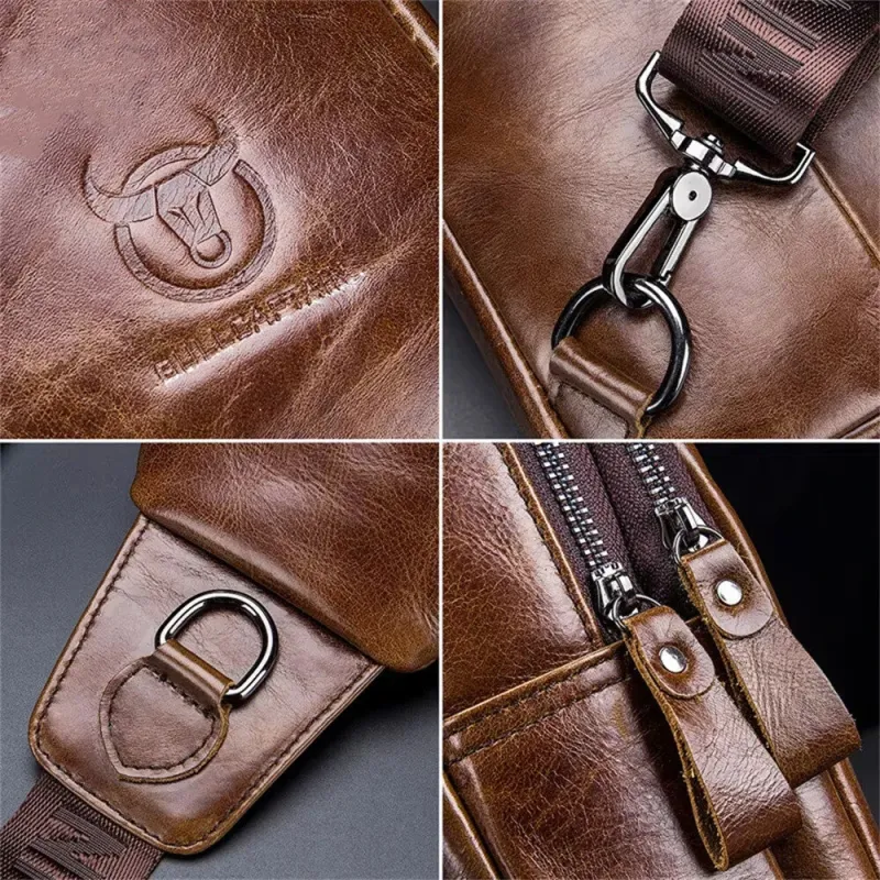 BULLCAPTAIN Men Genuine Leather Chest Bag Multi-pockets Compartment Fashion Casual Shoulder Backpack for Travel