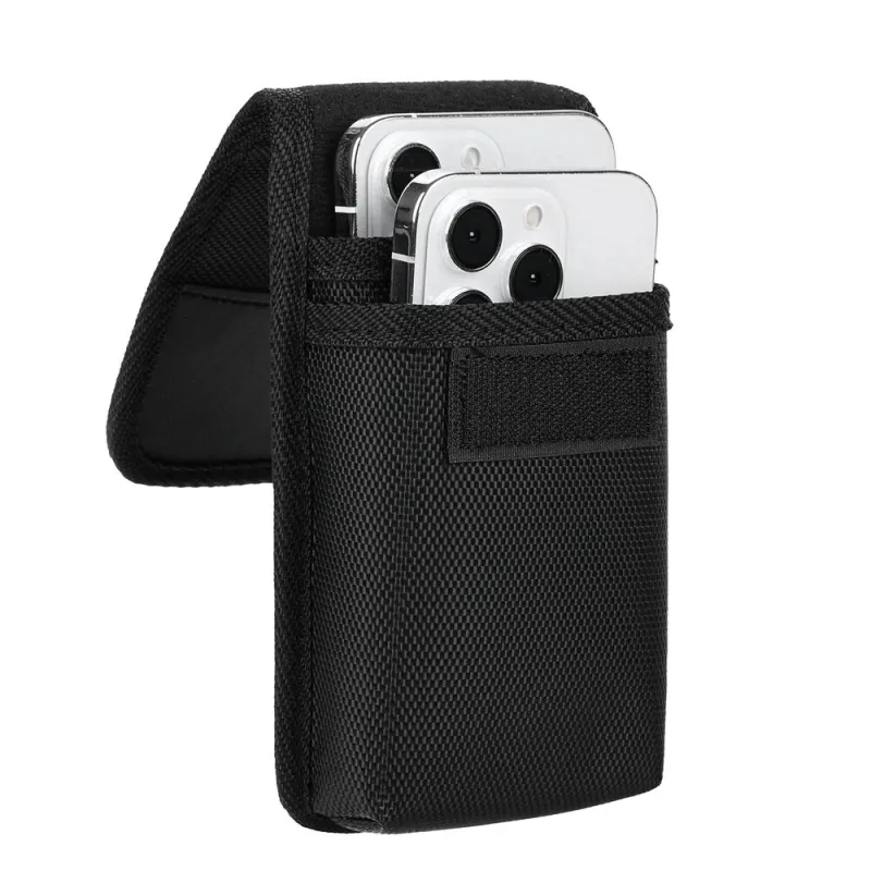 7.5'' Universal Phone Waist Bag Portable Nylon Dual Pocket Wear Belt Waist Packs Protective Case with Buckle