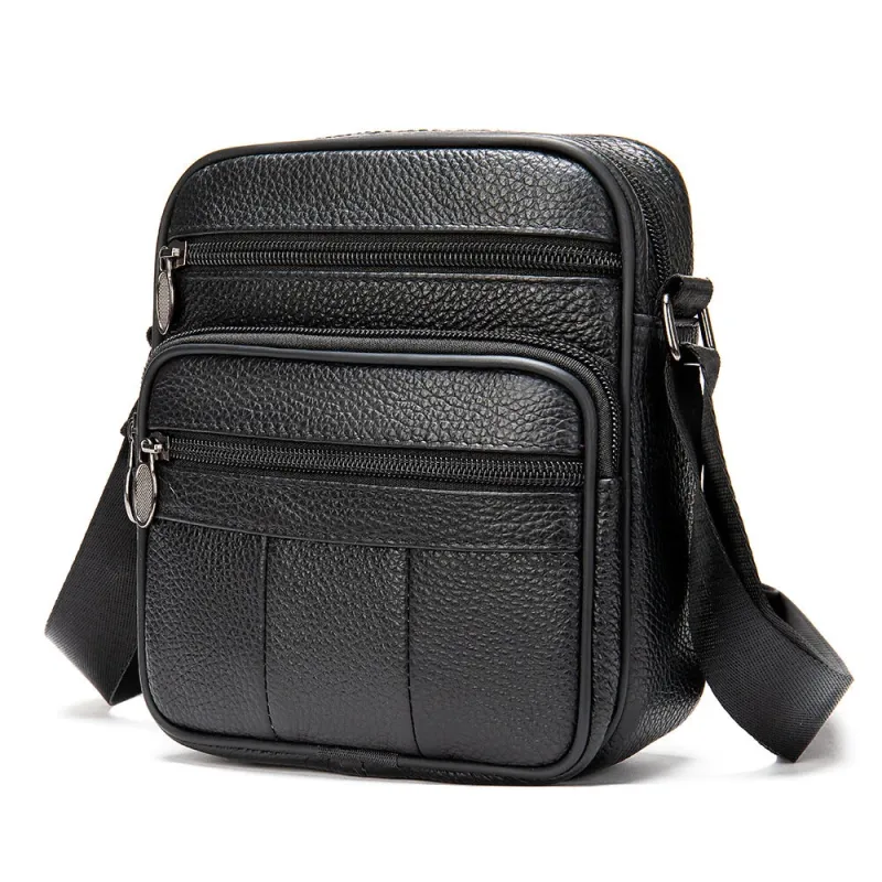 Ekphero Men's Genuine Leather Shoulder Bag Business Casual Messenger Bag Multiple Pocket Capacity Crossbody Bag
