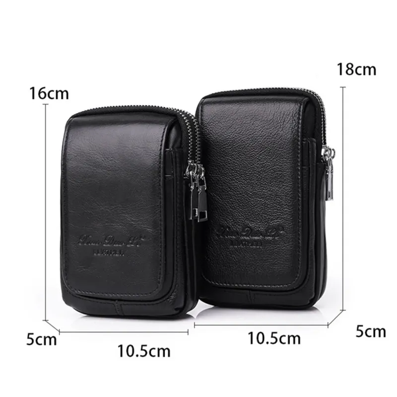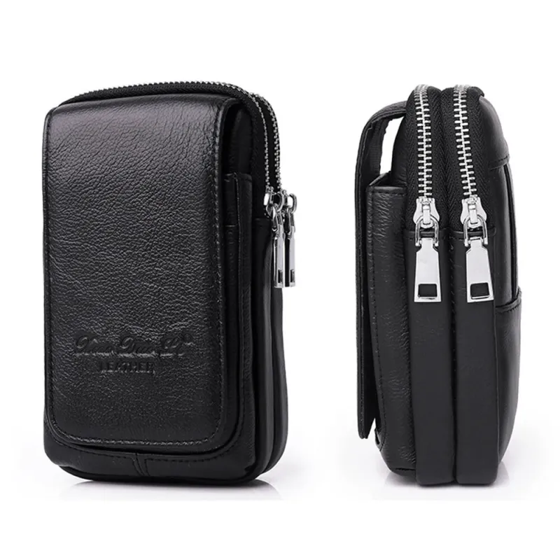 Men's Genuine Leather Zipper Waist Pack Phone Storage Waist Bag Belt Hanging Key & Card Storage Bag